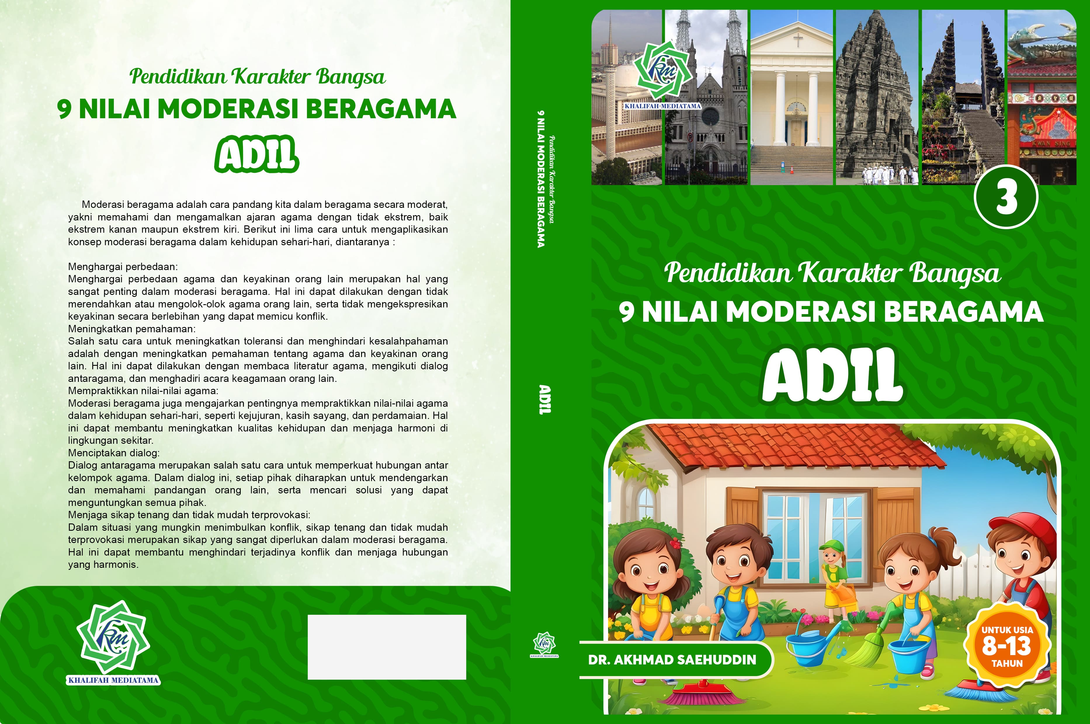 Hadirnya buku 9 Nilai Moderasi Beragama dapat menjadi solusi untuk memperkenalkan dan menanamkan nilai-nilai Moderasi Beragama pada peserta didik di tingkat SD/MI dan SMP/MTs. Buku ini didesain dengan pendekatan cerita bergambar yang menarik dan unik. Selain memberikan edukasi pentingnya nilai-nilai Moderasi Beragama, buku ini juga memperkenalkan ragam kearifan lokal dan budaya Nusantara. termasuk keindahan alam Indonesia.