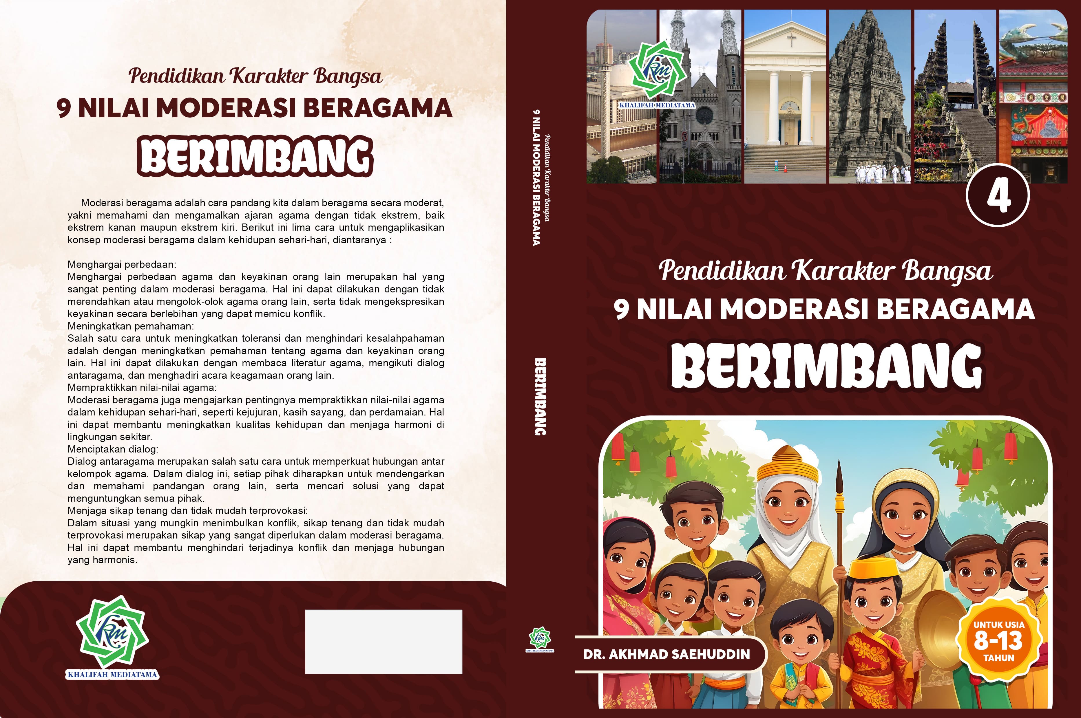 Hadirnya buku 9 Nilai Moderasi Beragama dapat menjadi solusi untuk memperkenalkan dan menanamkan nilai-nilai Moderasi Beragama pada peserta didik di tingkat SD/MI dan SMP/MTs. Buku ini didesain dengan pendekatan cerita bergambar yang menarik dan unik. Selain memberikan edukasi pentingnya nilai-nilai Moderasi Beragama, buku ini juga memperkenalkan ragam kearifan lokal dan budaya Nusantara. termasuk keindahan alam Indonesia.