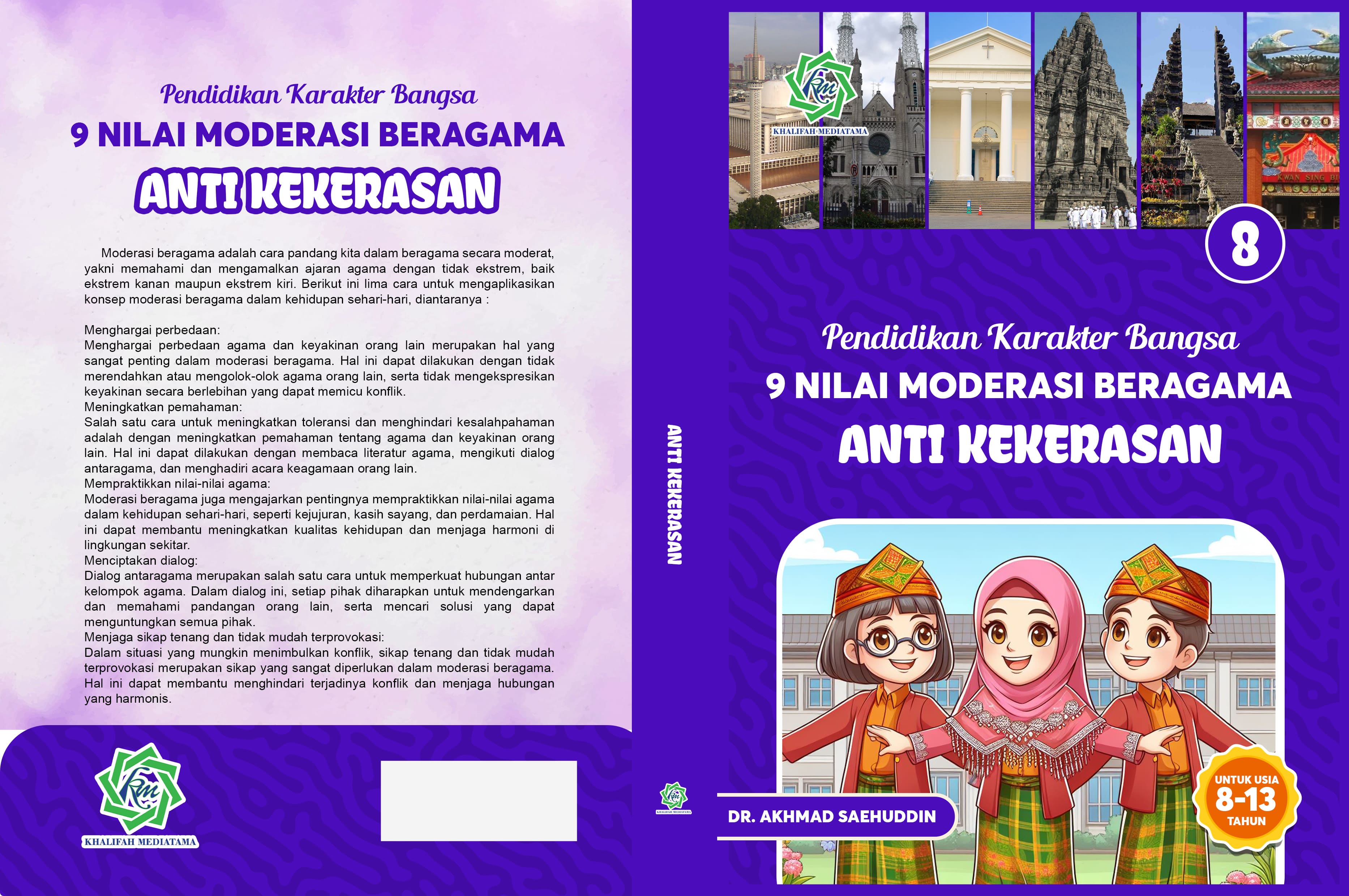 Hadirnya buku 9 Nilai Moderasi Beragama dapat menjadi solusi untuk memperkenalkan dan menanamkan nilai-nilai Moderasi Beragama pada peserta didik di tingkat SD/MI dan SMP/MTs. Buku ini didesain dengan pendekatan cerita bergambar yang menarik dan unik. Selain memberikan edukasi pentingnya nilai-nilai Moderasi Beragama, buku ini juga memperkenalkan ragam kearifan lokal dan budaya Nusantara. termasuk keindahan alam Indonesia.